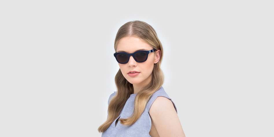 Saulesbrilles no plastikāta, klasiskā mazā “tauriņa” forma, eleganta tumša krāsa. Iespējamās krāsas: zils, brūns/havana. Uzticama UV-400 aizsardzība no saules stariem.